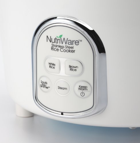 Restaurant-quality white and brown rice. Healthy steamed meals. Hearty soups and stews. This nutriware 14-cup digital rice cooker and food steamer easily makes all this and much more it flawlessly prepares 4 to 14 cooked cups of any type of rice with specialized functions for white rice and brown rice. The included stainless steel steam tray allows for meats and vegetables to be steamed while rice cooks below for easy, one-pot meals. The patent-pending sauté-then-simmer technology allows the rice cooker to sauté foods at a high heat and automatically switches to a simmer once liquid is added; perfect for the easy preparation of a wide variety of stovetop classics. All cooking surfaces are made of surgical-grade 304 stainless steel. And when the cooking is done, the stainless steel inner cooking pot and all accessories remove for easy cleanup in the dishwasher. Includes recipe booklet, steam tray, measuring cup and serving spatula.